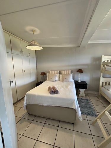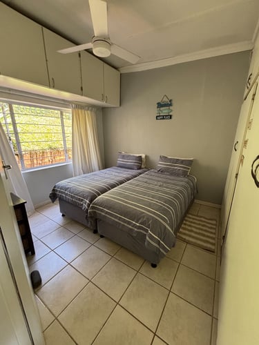 Your ideal destination for South Coast holiday accommodation, offering tranquility and safety just steps from Umzumbe Beach. Mockingbird Chalet provides an inviting retreat surrounded by a meticulously maintained garden featuring a jungle gym for children. The modern open-plan kitchen is equipped with high-end finishes, premium appliances, and a convenient breakfast nook. The tastefully furnished lounge and dining area include a luxurious suite, flat-screen TV, DSTV, radio, and ceiling fans for comfort. The bedrooms are thoughtfully designed, with the main bedroom offering a double bed and built-in cupboards, and the second bedroom furnished with a double bed and a sleeper couch. The family bathroom offers a modern, fully tiled design with both a bath and shower, complemented by fresh towels for guests’ convenience. Outside, a charming veranda provides a relaxing spot to enjoy views of surfers and occasional dolphin sightings.